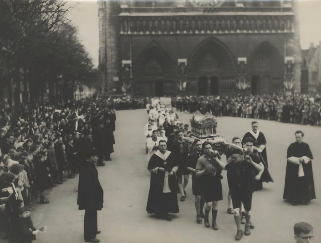 Em 1944 a França se vê livre do domínio nazista alemão. Neste ano Santa Teresinha foi proclamada padroeira secundária da França. Unindo os dois fatos os bispos pedem às irmãs do Carmelo que a “urna do Brasil” na qual tinham sido depositados os restos mortais de Santa Teresinha, peregrinem por três dioceses francesas: Paris, Dijon e Marsaille. Não se esperava muito destas visitas, mas, contrariando as expectativas, as relíquias atraíram multidões. Diante disso as outras dioceses daquele país começaram a pedir a visita, o que ocorreu nos anos seguintes.